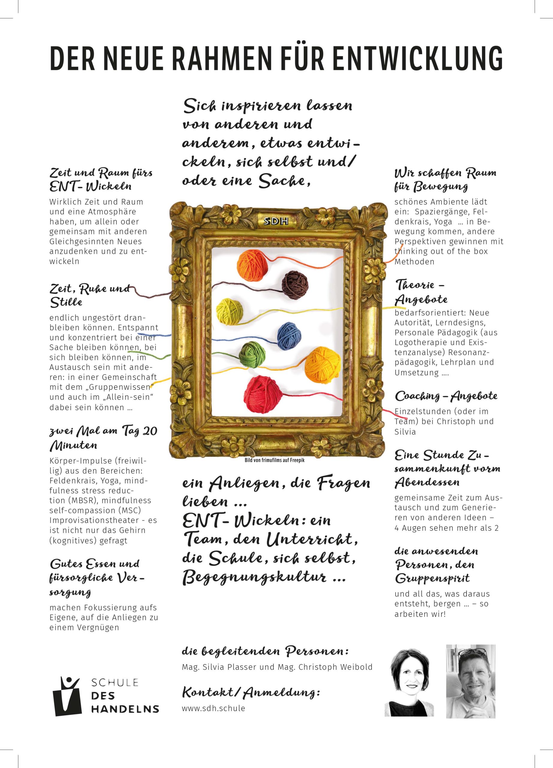 Das Setting für die Paarberatung ist: ein Paar mit seinen Anliegen, eine Doppeleinheit (120 min) und ein Beraterpaar (Erhard Reichsthaler & Silvia Plasser) Das Ziel: Räume und Möglichkeiten zu eröffnen für wirkliches „Gehört und Verstanden werden“, um sich dann auch an Lösungsschritte zu wagen, nach dem Motto: Das ist noch lange nicht die beste Version von mir!